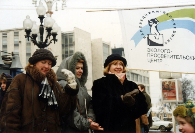 Уже в 1997 году «Заповедники» выступили одним из организаторов празднования 80-летия заповедной системы России. Основатель и бессменный руководитель центра Наталья Данилина (справа) с коллегами на Пушкинской площади.
